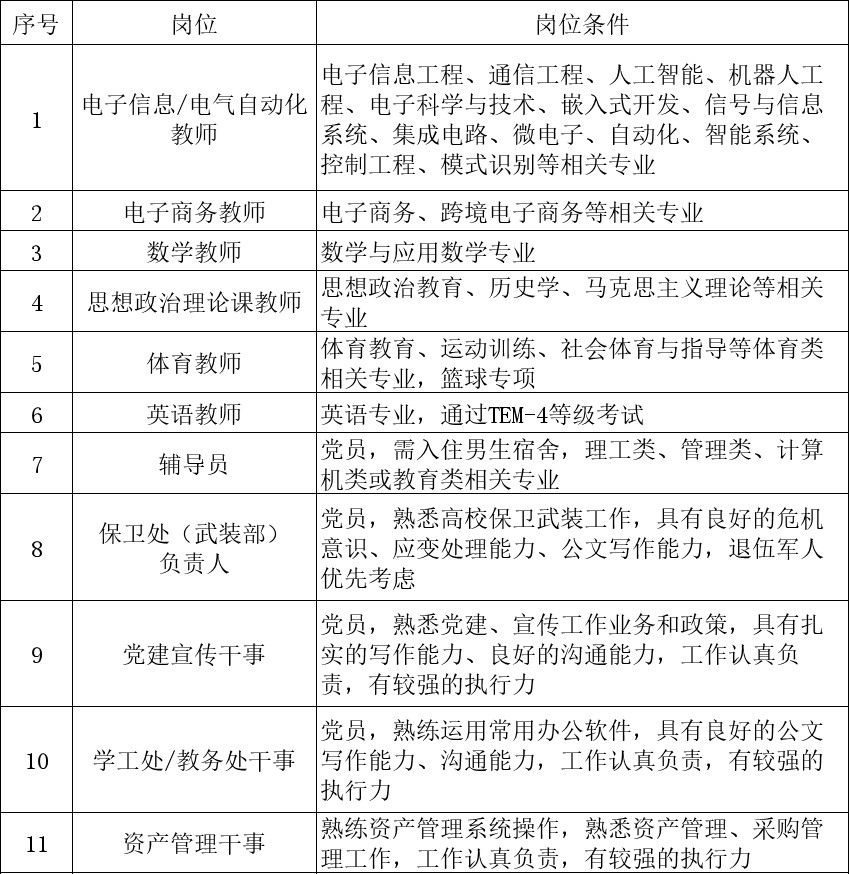 5.具有岗位所需专业或技能条件,具有高校教学经验、中级以上专业技术职务或具有行业、企业工作经历优先考虑,条件可适当放宽;