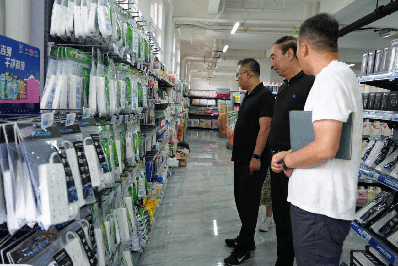 在走访校园商业街、学校超市等区域时,校领导指出,要为学生生活消费提供充足后勤保障,保证基本生活物资需求。
