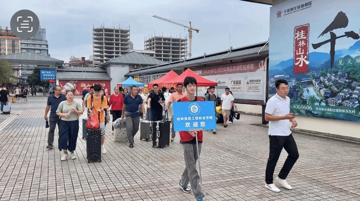 晨曦微露,迎新工作人员和志愿者同学就已在桂林北站、桂林站和永福南站等候,高举“桂林信息工程职业学院欢迎您”迎新牌,热情接待一张张朝气蓬勃的新面孔。“你好,新同学,一路辛苦了!”一声声亲切的问候让新生和家长倍感温暖。