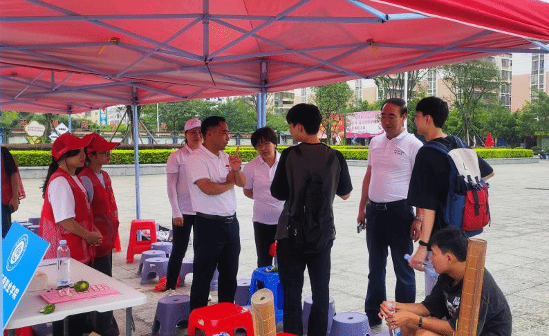 下午,校领导来到桂林永福南站,给予一线迎接新生的工作人员、学生志愿者深切问候,感谢他们在烈日下辛苦付出,正是他们的默默付出,滴滴汗水,才顺利完成学校的迎新工作。