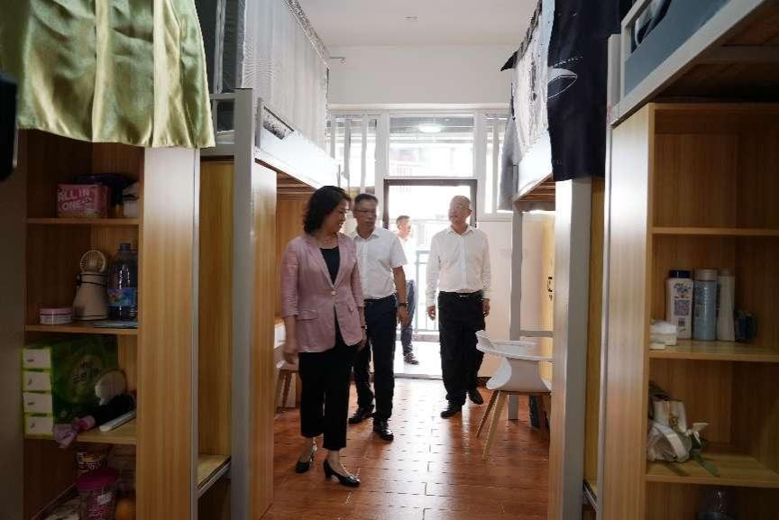 郑平副市长一行实地察看了教学楼、运动场、教师公寓、学生公寓及学生食堂等教学生活设施。