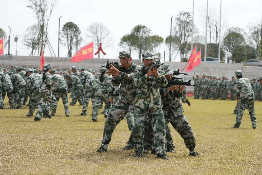 开学典礼之前,2023级新同学先后进行了整齐划一的分列式表演和精彩纷呈的格斗术、匕首操、反恐演练等军事训练汇报表演。烈日炎炎下,学生们高昂的斗志、矫健的步伐,展现了桂信学子钢铁般的意志与青春激昂的风采。