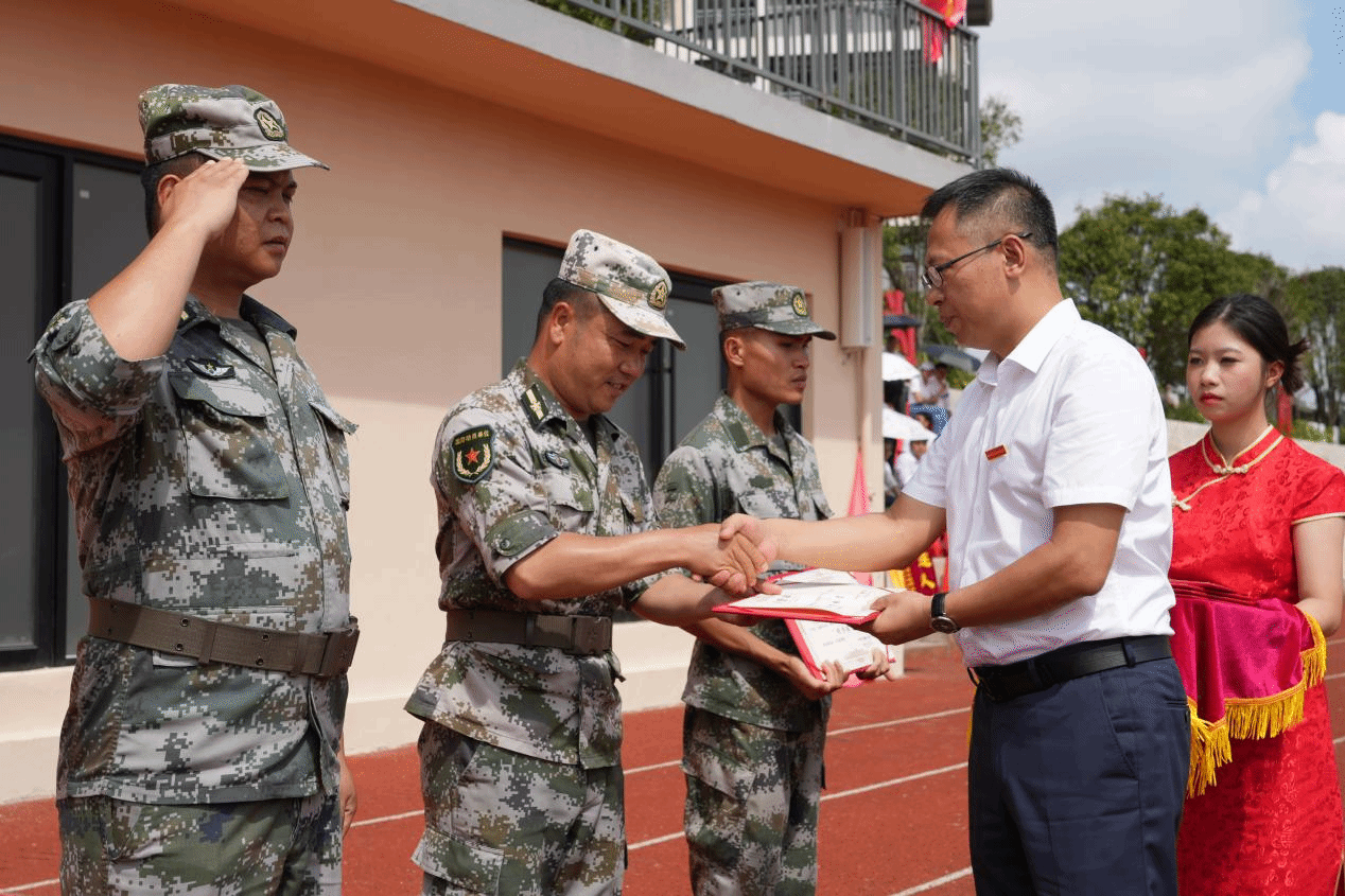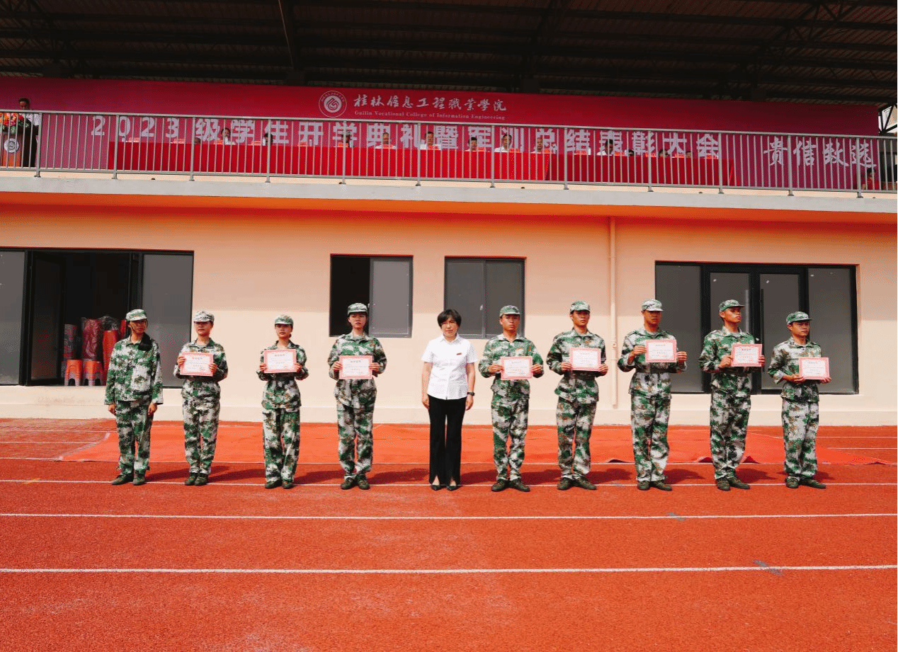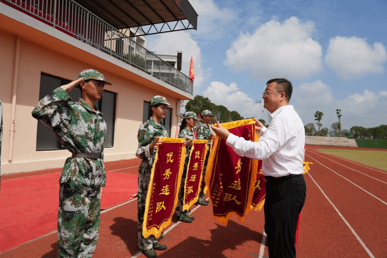 桂林市警备区军训队长马建方作军训工作总结,他表示,过去两周,全体新生按照军训计划,从严训练,在风吹日晒中铸就坚强,在挥洒汗水中收获成长,展现了桂信学子的良好精神风貌。他希望全体新生厚植爱国情怀,坚定理想信念;传承优良作风,砥砺扎实学风;牢记强国使命,锤炼品德修养,争做有理想、敢担当、能吃苦、肯奋斗的新时代好青年。