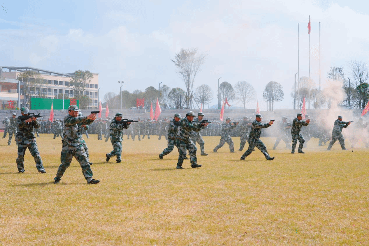 学校全体教职工、2023级新同学和承训部队全体教官参加了大会。