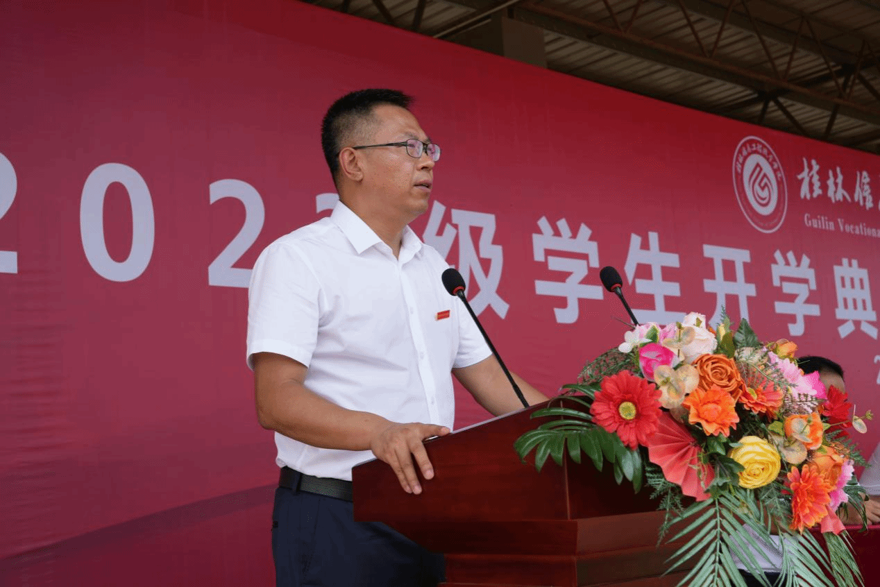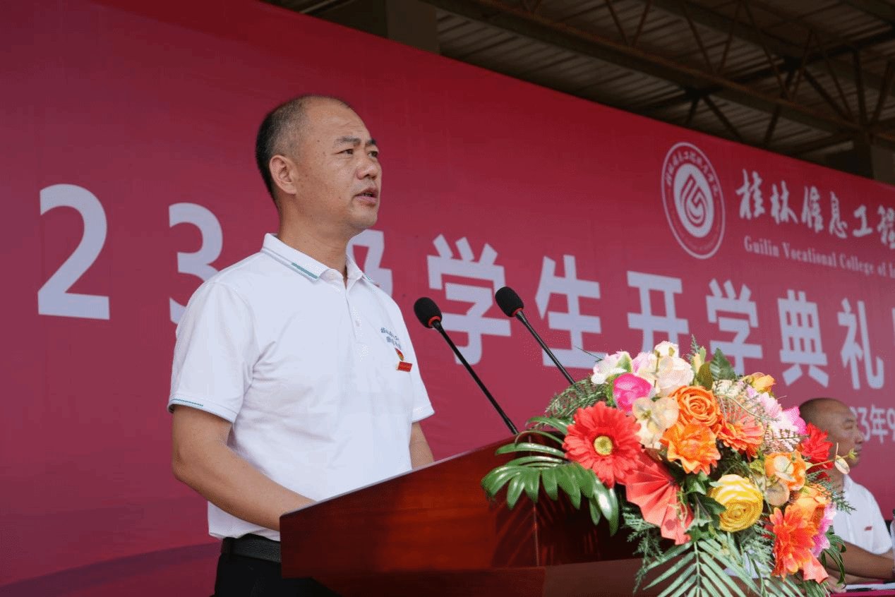9月17日,我校2023级学生开学典礼暨军训总结表彰大会在学校田径场隆重举行。学校董事长衣琛,校长张向东、党委书记黄强、常务副校长邓献宇、副校长汤心等校领导出席大会。桂林市经开区管委会副主任邱海波,桂林市教育局党组成员、副局长容志权,桂林市警备区军训队长马建方应邀出席。大会由副校长伍顶主持。